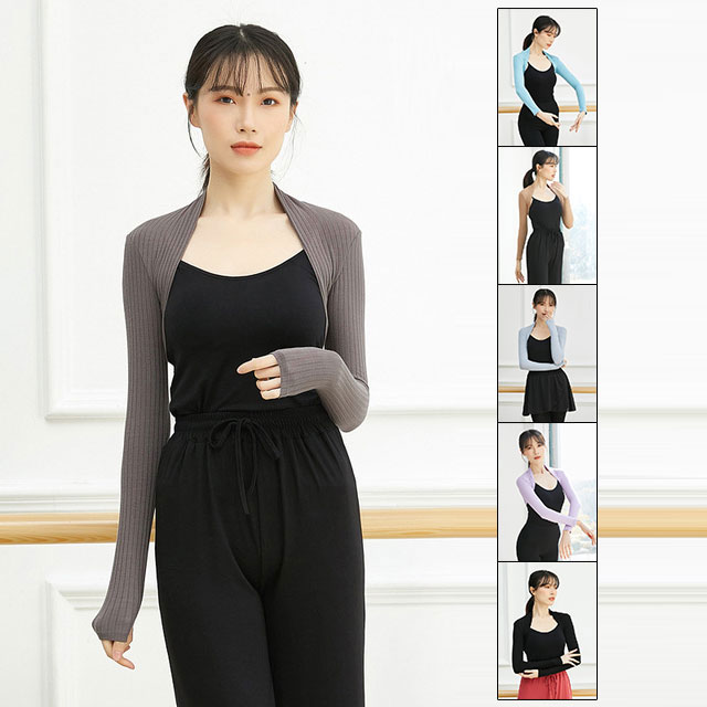 バレエ トップス 大人 ダンス ヨガ ニットトップス 肩と腕の冷え対策 ウォームアップ バレエ用品 長袖 レディース アームカバー ブラック 黒 ボレロ