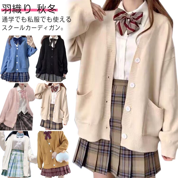 スクールカーディガン ドロップショルダー ゆったり 学生服 無地 スクールセーター 学生 女子高生 カーディガン 制服 ニット