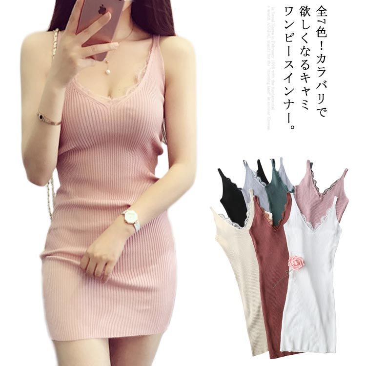 全7色 ロングキャミソール ニットキャミソール キャミソール ロング丈 ミニワンピース タイト ワンピース ミニ スリップ Vネック 大人 セクシー リブ