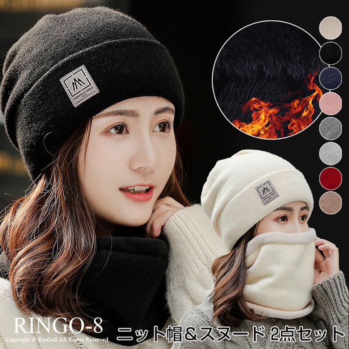 ニット帽 レディース ネックウォーマー ふわふわ 裏ボアで耳まで暖かい 冬 裏起毛 レディース帽子 スヌード 2点セット 自転車 スキー帽子 厚手 あたたかい 防寒 帽子 ス ニットキャップ