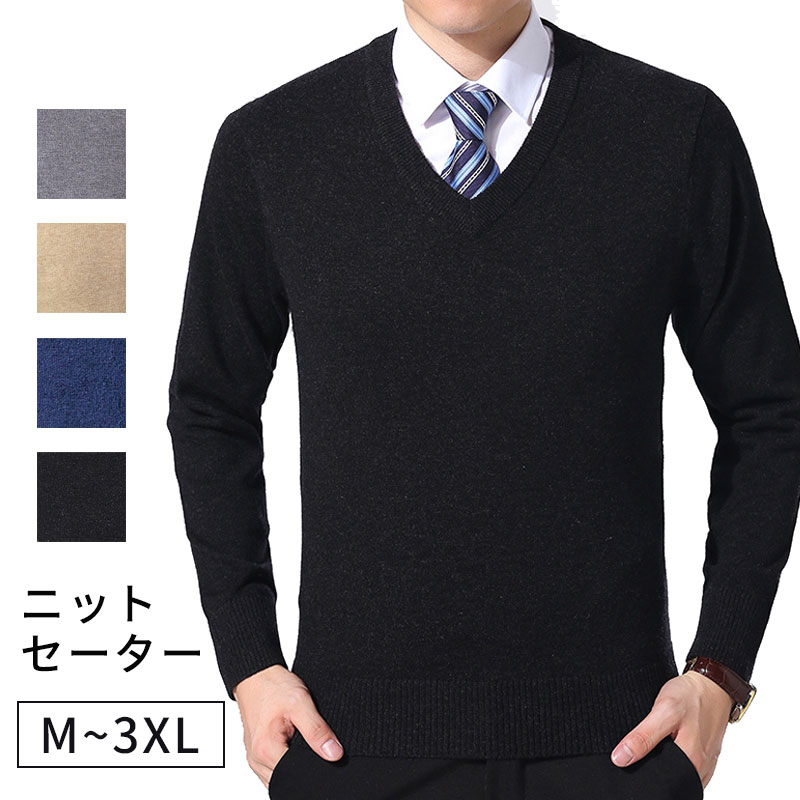 ニット セーター メンズ Vネック ビジネス カジュアル 制服 高校 オフィス 無地 ベスト メンズセーター V首 薄手 伸縮性 通勤 通学 春秋冬 おしゃれ 大きいサイズ M~3XL プレ シンプル