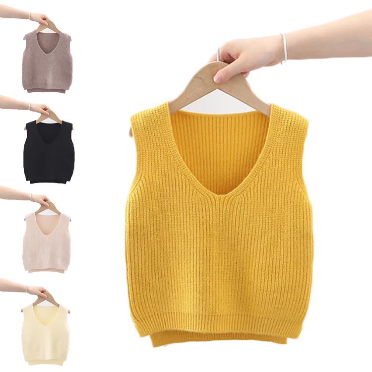 ニットベスト セーターベスト Vネック 春秋 ニット ベスト スリット入り ノースリーブ 女の子 無地