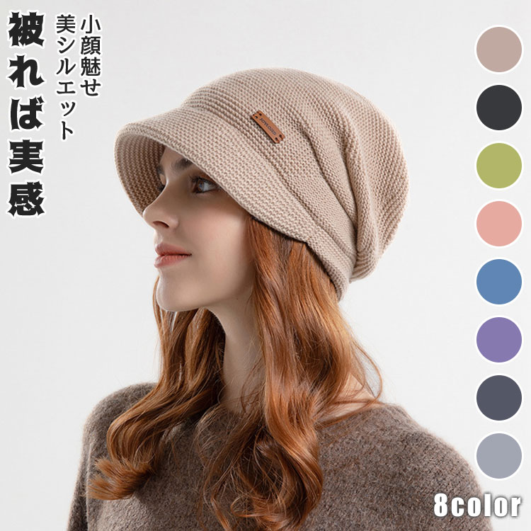 ニット帽 帽子 レディース キャスケット ニットキャップ 大きいサイズ ゆったり 深め つば付き 小顔効果 つば広 UV 紫外線 日よけ 暖かい 防寒 保温 冷え対策 洗える 日焼け防止 自転車 秋冬