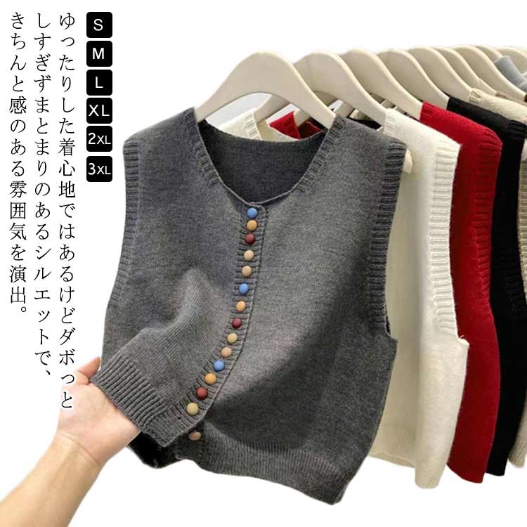 レディース 前開き 秋 ベスト きれいめ ニットベスト 袖なし 春秋 トップス 重ね着 ニット 春 かわいい セーター レイヤード カーディンガン 体型カバー カジュ ゆったり