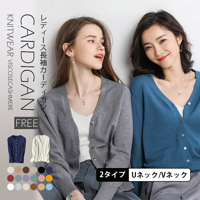 カーディガン ニット 長袖 カシミアタッチ ミドル丈 レディース ニットカーディガン 前開き ハイゲージニット リブ編み 2タイプ Uネック アウター Vネック カーデ トップス 肌着 部屋着 肩掛け