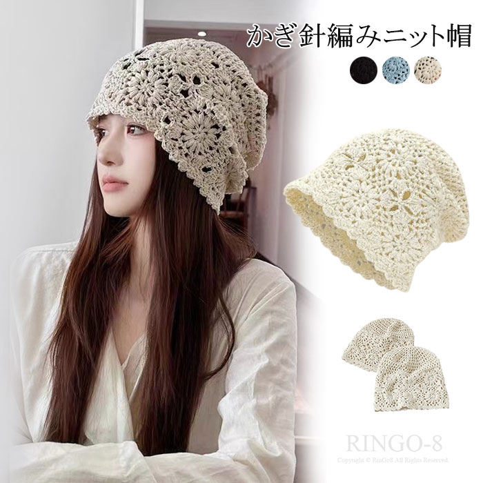 かぎ針編みニット帽 レディース サマーニット帽 透かし編み 無地 おしゃれ 可愛い 花柄 通気 吸汗 蒸れない ゆったり 小顔効果 キャップ 春夏 小顔効果保温性 おしゃれ帽子 通勤 可愛い帽子