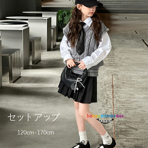卒業式スーツ 女の子 セットアップ フォーマル スーツ 卒園式 入学式 発表会 七五三 キッズ 上下セット 長袖シャツ+ニットベスト+スカート+ネクタイ 4点セット おしゃれ 子供スーツ