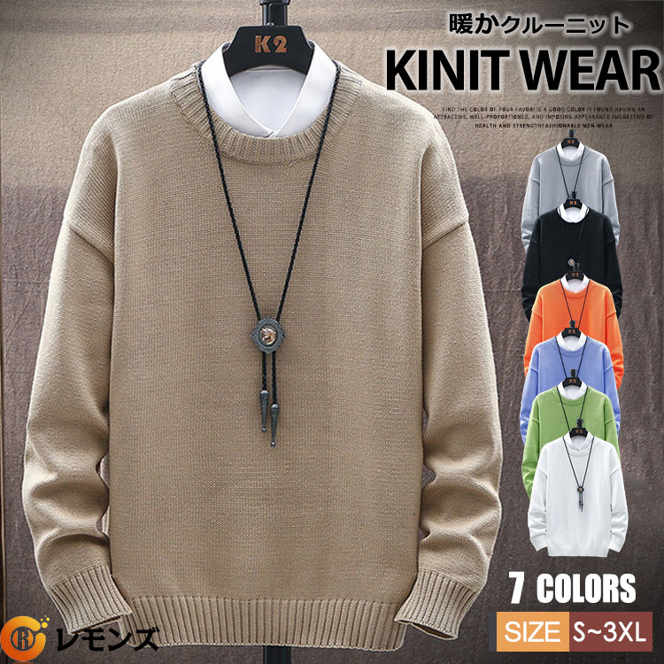 ニット メンズ ニットセーター ニットソー 長袖 クルーネック リブ編み 無地 秋冬 インナー セーター ビジネス シンプル メンズファッション 暖かい 秋服 カジュアル ホワイト ベー 冬物