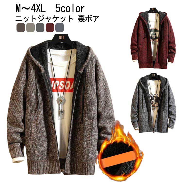 秋冬 メンズ カーディガン ニットカーディガン ジップカーディガン ジャケット アウター ニットジャケット 裏ボア 裏起毛 ジップ ZIP パーカー ジップパーカー 長袖 あったか 防寒 保暖 暖かい